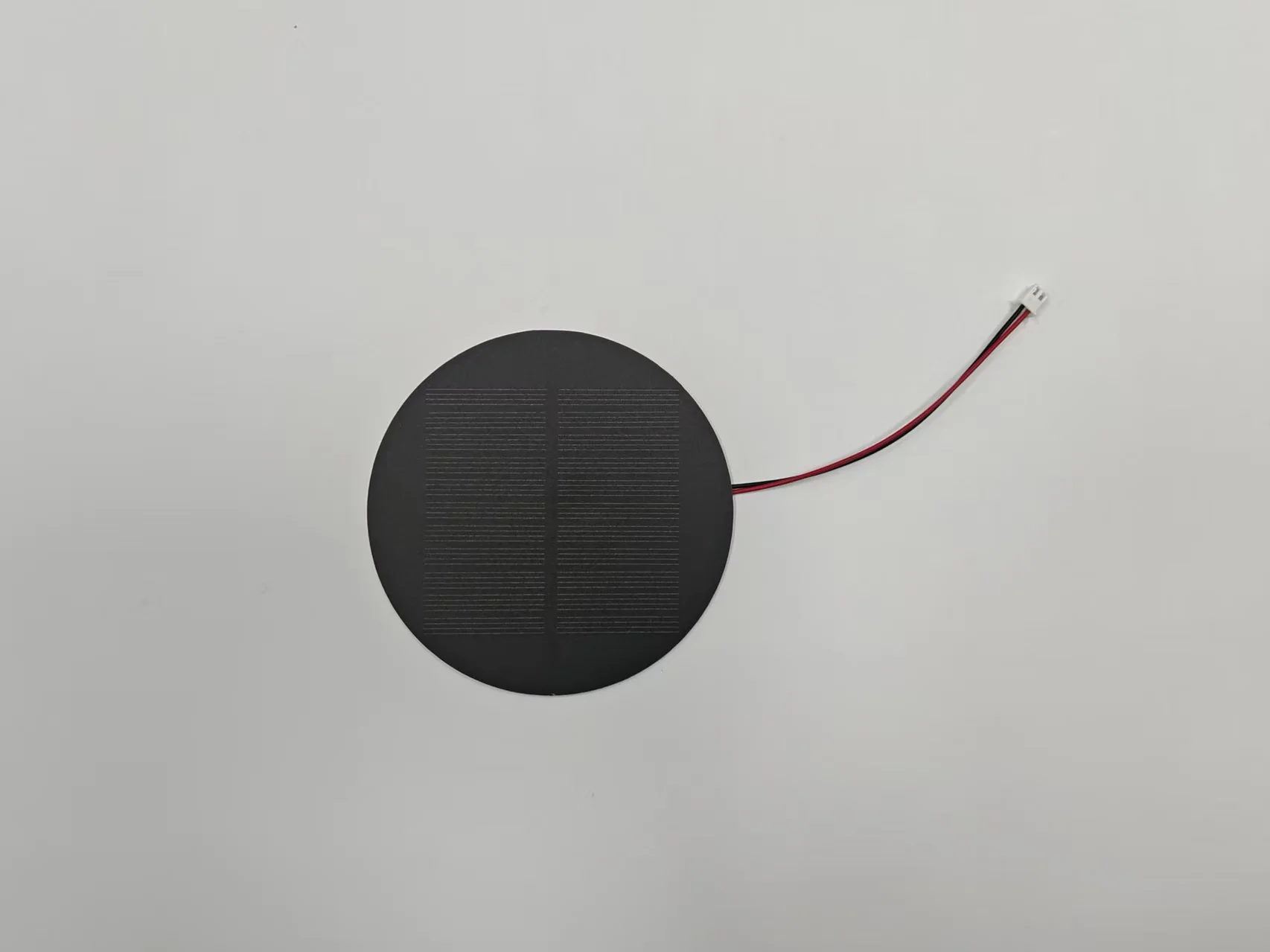 HX 1.5W customized round solar panel features a 110mm diameter design, utilizing high-efficiency PERC mono cells, a PET abrasive surface, and a PCB backsheet for both aesthetic appeal and durability.