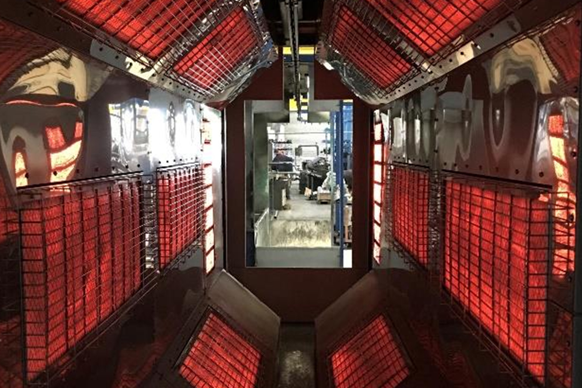 The equipment uses infrared radiation to directly heat the coating, rapidly reaching the curing temperature and allowing molecular crosslinking to form a durable coating. Infrared radiation has strong penetration, provides uniform heating, and ensures fast curing.